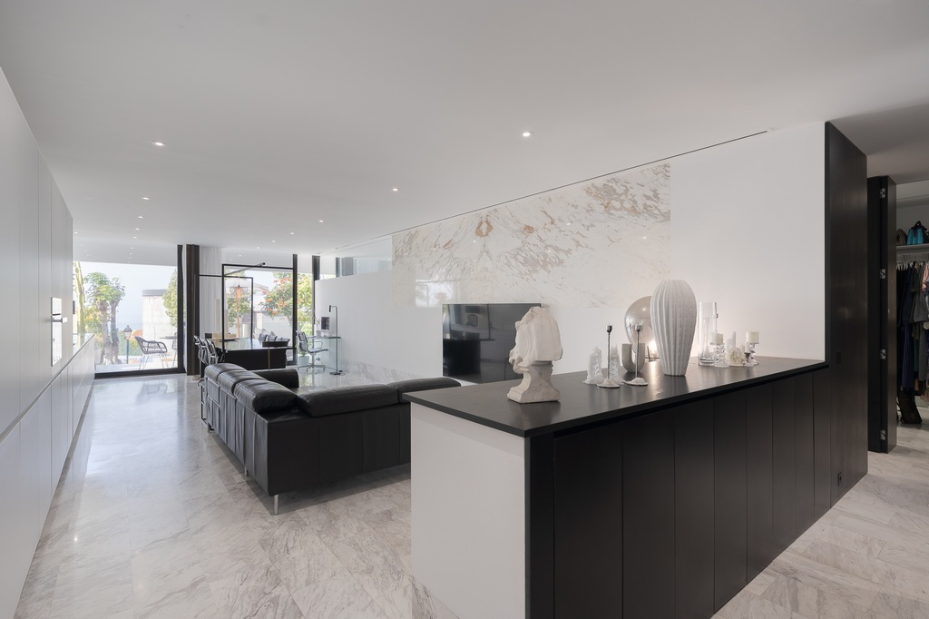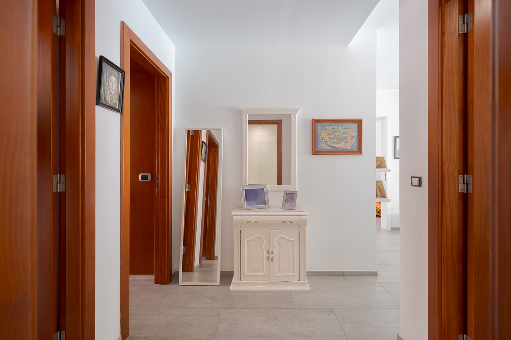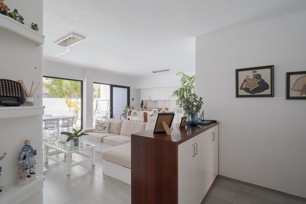 - Planta alta: Amplio salón-cocina-comedor, con gran luminosidad natural gracias a sus ventanales y conexión a terraza exterior con vistas al mar, un baño, tres dormitorios con armarios empotrados, el principal dispone de baño en suite.