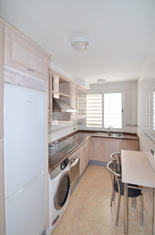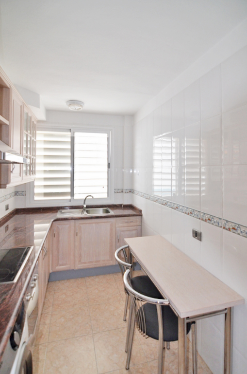 La vivienda ofrece una cocina totalmente equipada y un salón de buen tamaño con vistas al mar, ideal para disfrutar de la luz natural durante todo el día. Es un piso muy luminoso y acogedor, perfecto tanto como residencia habitual como inversión.