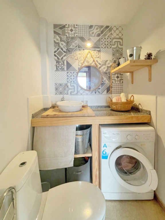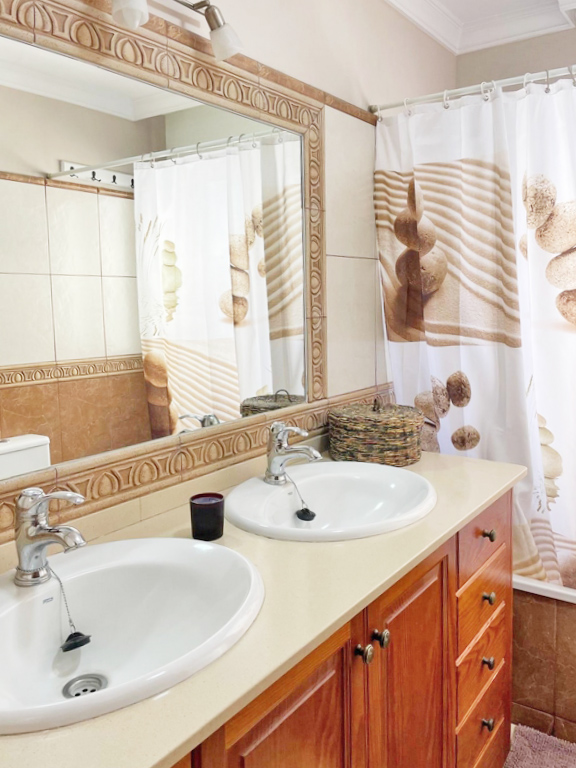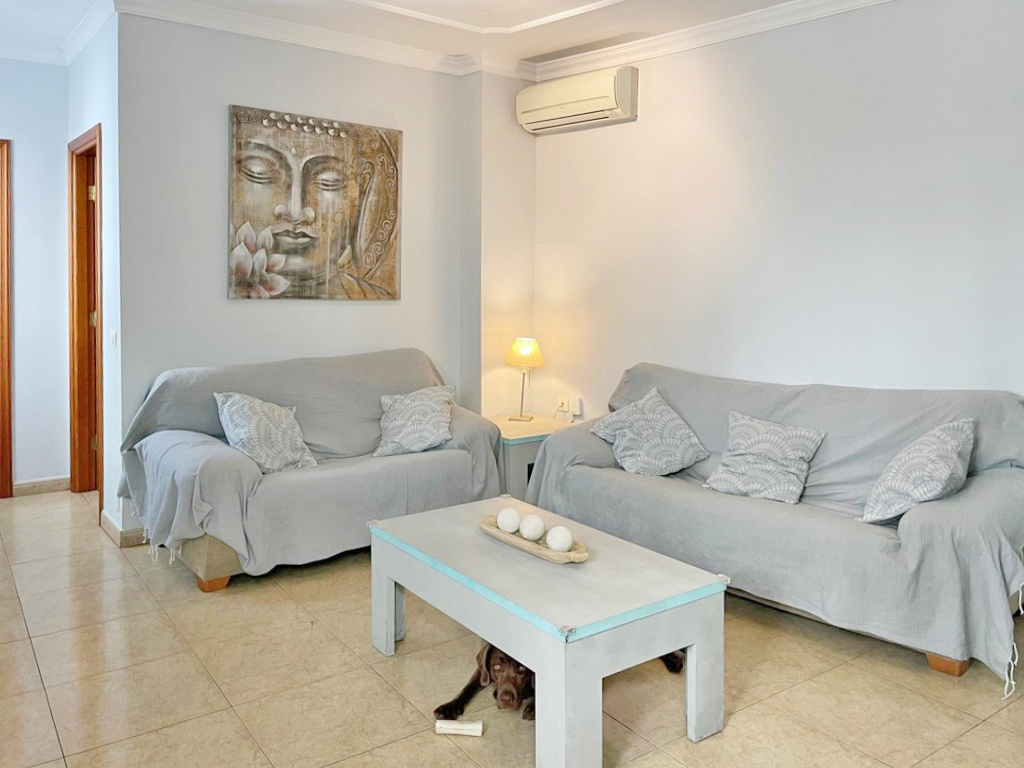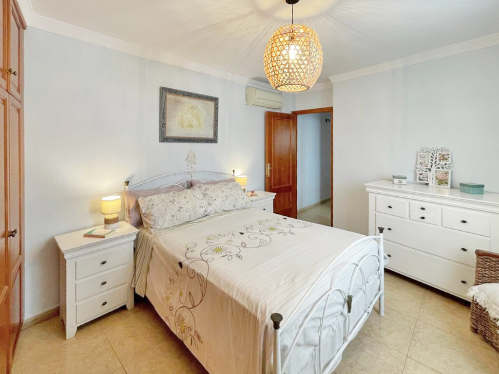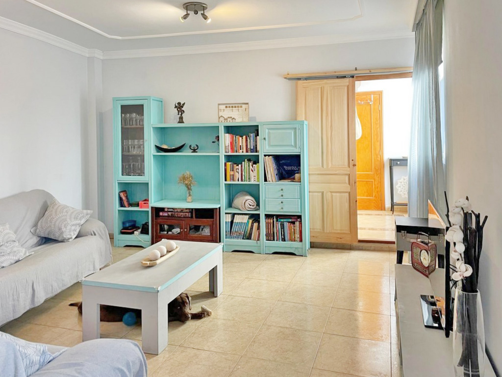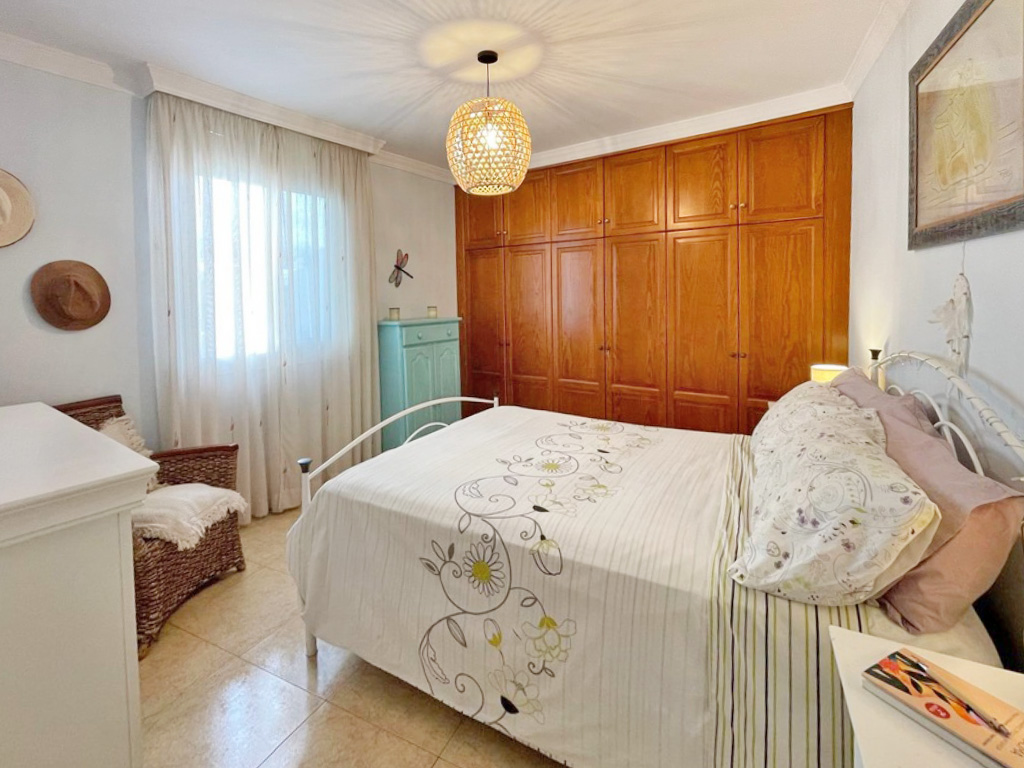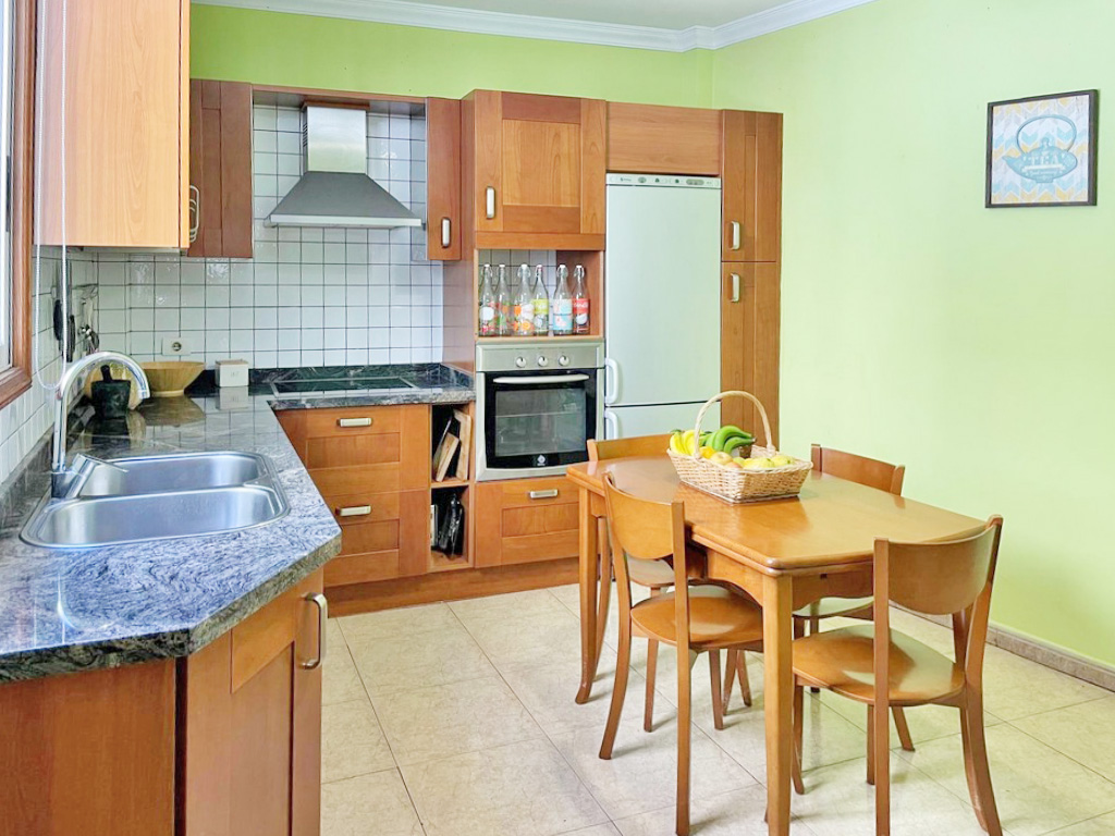 En la planta baja se sitúan las zonas comunes, pensadas para la vida familiar y social. Dispone de un bonito y luminoso salón con aire acondicionado, una amplia cocina integrada equipada con muebles de madera maciza, un baño completo y un gran garaje con zona de trastero.