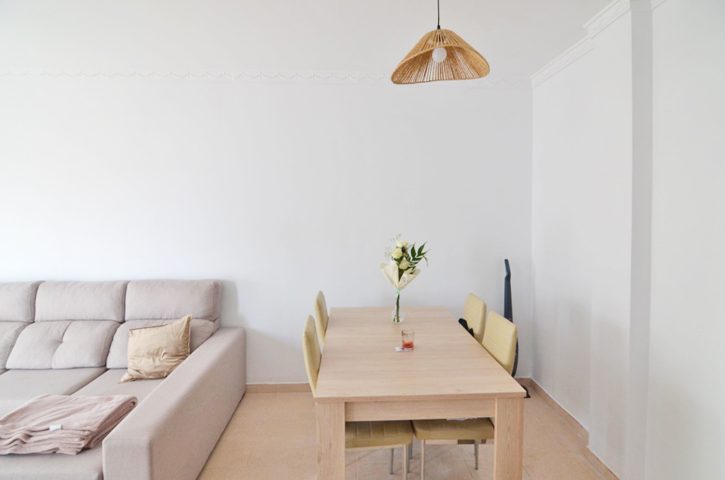 La vivienda, es ideal para familias se distribuye en cuatro dormitorios, un baño completo, un aseo, cocina con solana para la zona de lavandería, salón-comedor y balcón. El piso es totalmente exterior por lo que es muy luminoso. Además, cuenta con plaza de garaje incluida en el precio y es un primero sin ascensor.