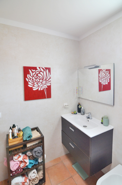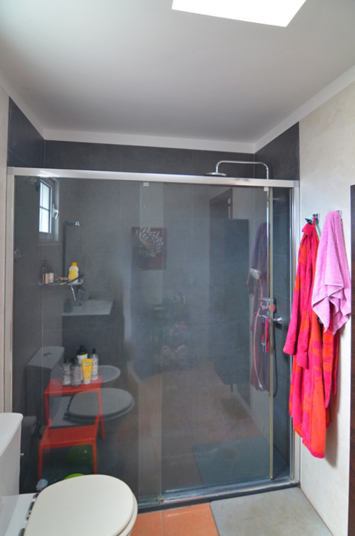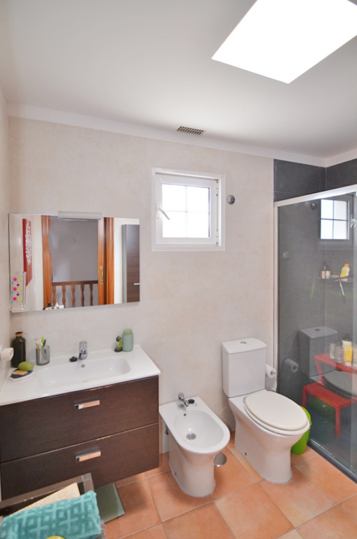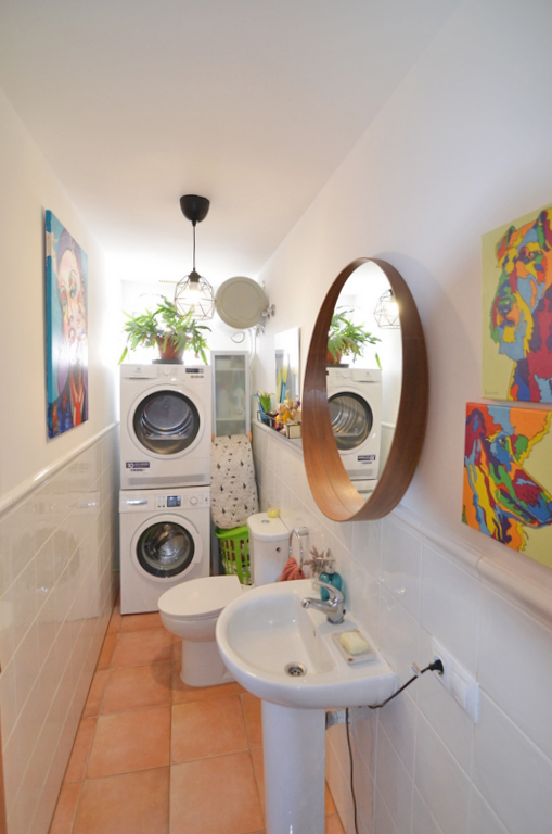 Un aseo con zona de lavandería y un pequeño trastero muy práctico.