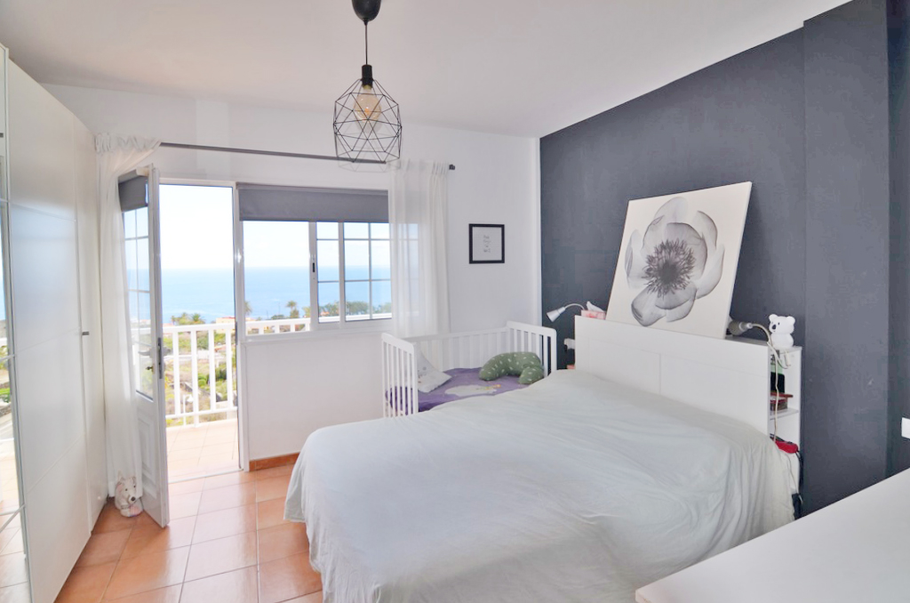 2 dormitorios, siendo el principal con armario empotrado y un balcón privado desde el que se aprecian unas maravillosas vistas al mar y a Santa Cruz de La Palma.